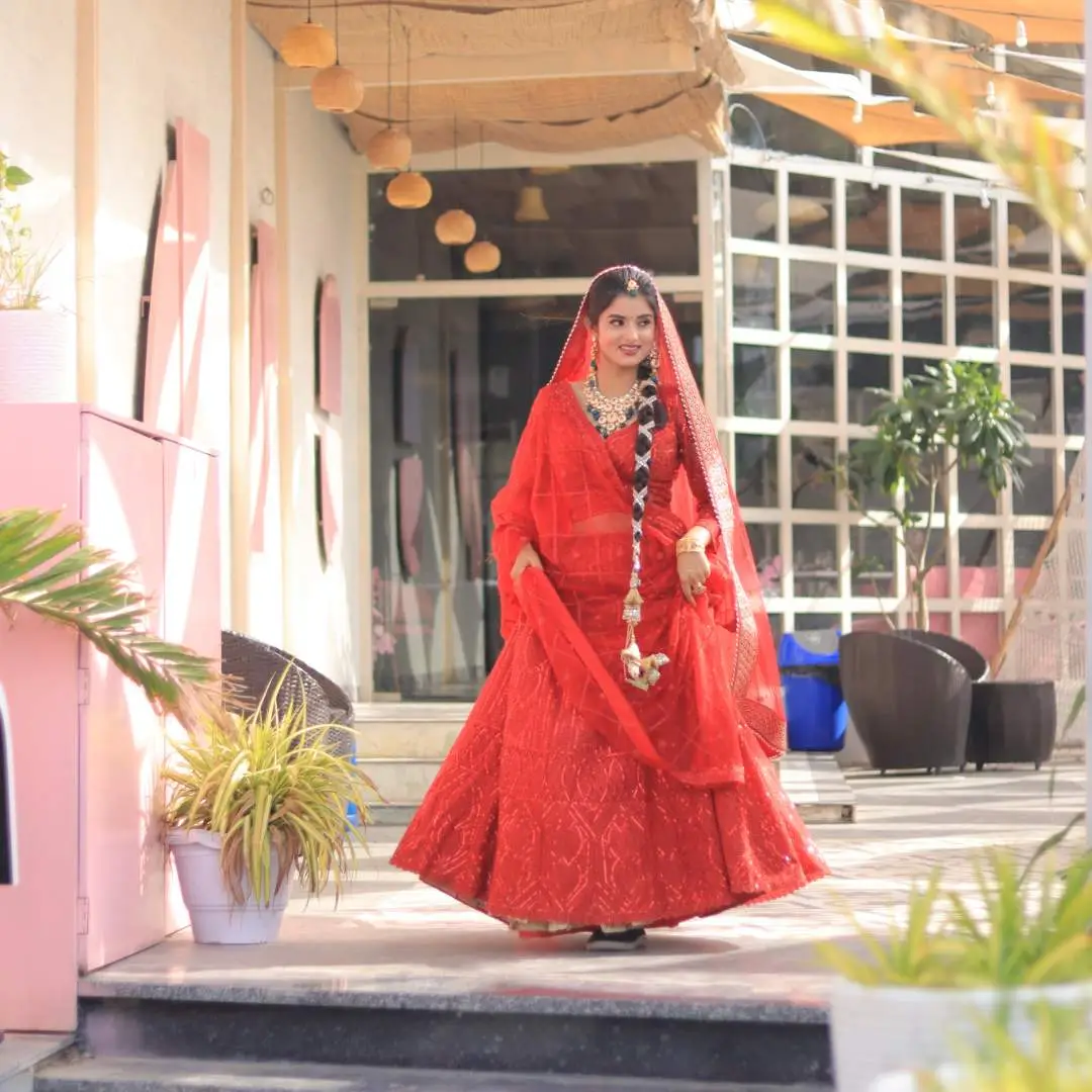 Whether it’s for a bridal entry, a wedding shoot, or a bridal shower, the color makes you feel confident, bold, and regal. Paired with gold, kundan, or polki jewellery, this red transforms your aura entirely.