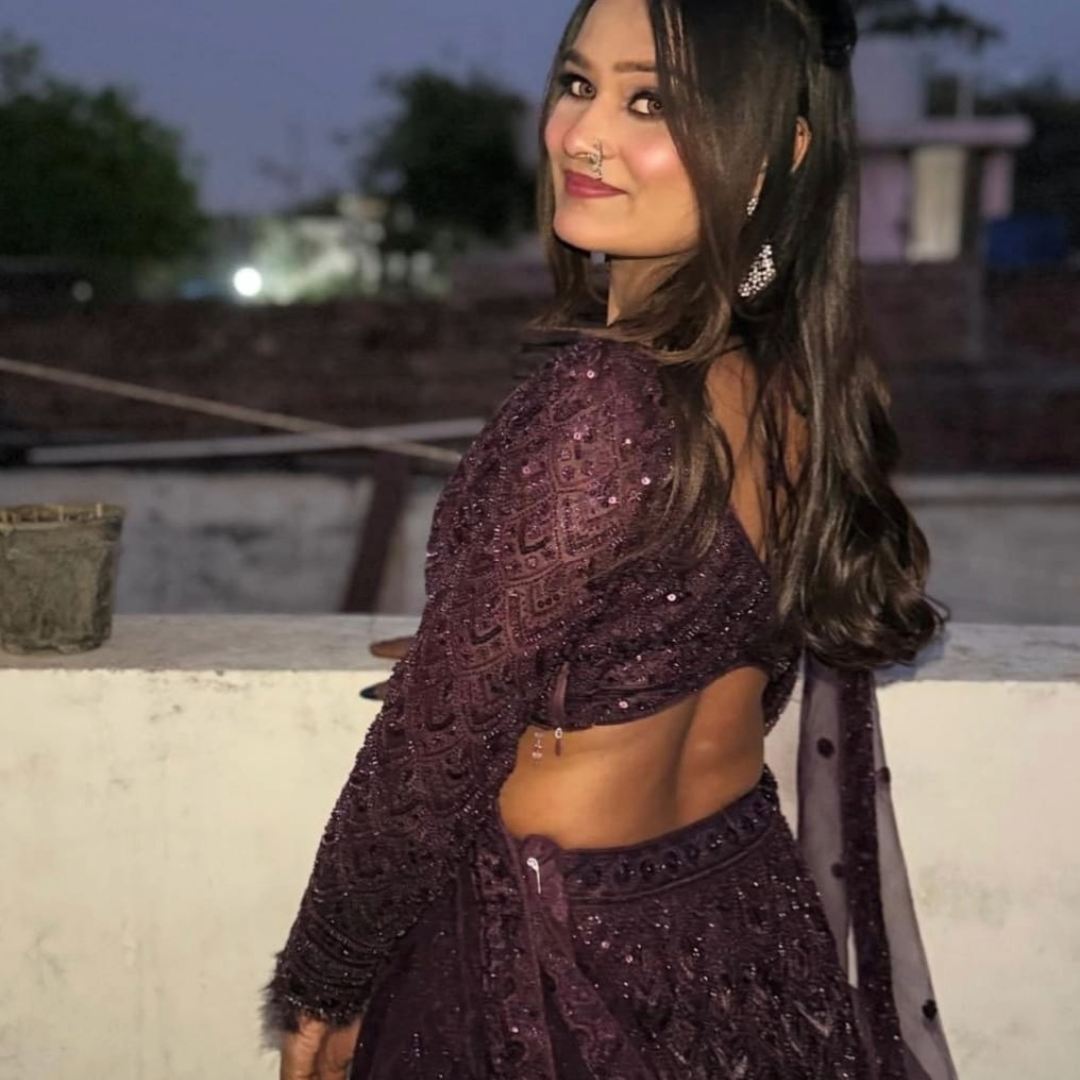 The deep wine color with fancy handwork reflects beautifully in photos. Whether it’s for a candid mehendi moment or a posed reception portrait, this lehenga shines under all lights.